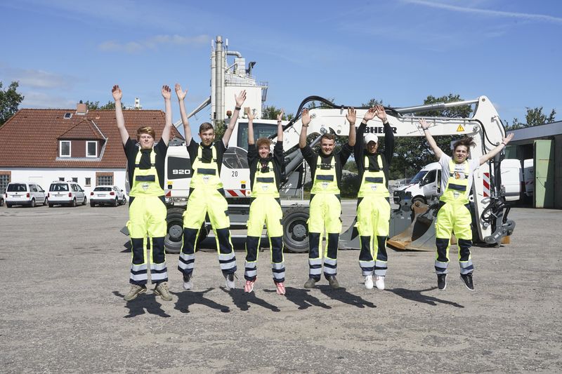 Anschließend ging es zur Kiesgrube nach Groß Rheide und zum Mischwerk nach Jagel, wo der Bauhof, das Labor und die Asphaltmischanlage vorgestellt wurden. Ein kleines Highlight war neben der Besichtigung der Asphaltmischanlage, die Ausgabe der Arbeitskleidung und persönlichen Schutzausrüstung und der Erhalt des persönlichen Werkzeugs.