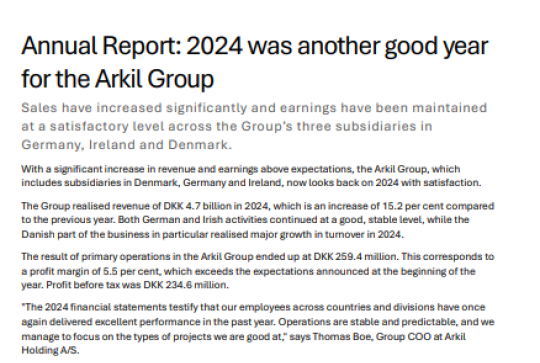 02.04.2025 Pressemitteilung der Arkil Group Pressemitteilung zum Jahresbericht 2024 der Arkil Group - 4,7 Mrd. DKK Umsatz