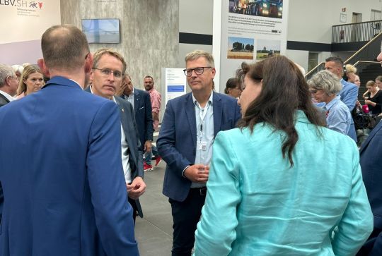 04.09.2024 Nordbau 2024 Holger Hansen und Vertreter vom Bauindustrieverband Hamburg Schleswig-Holstein im Gespräch mit Daniel Günther