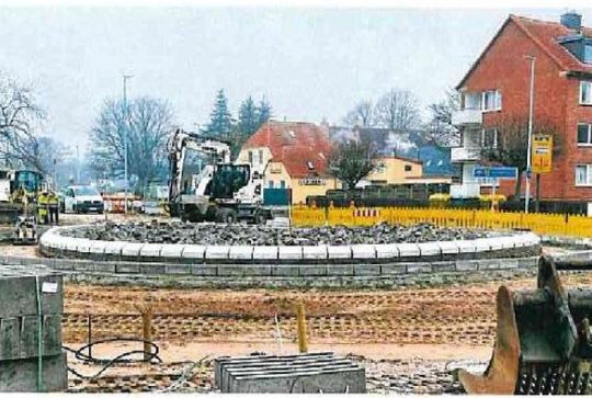 06.03.2023 Neuer Kreisverkehr in Husum Adolf-Brütt-Straße in Husum: Einrichten der Baustelle für den Kreisel und die Kanalsanierung