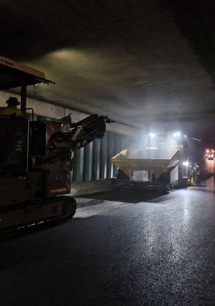 In beiden Fahrtrichtungen wurden auf ca. 65.000 m² Fahrbahn 35.000 Tonnen Asphalt aus und wieder eingebaut.