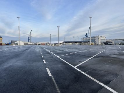 Auf einer Fläche von rund 1,8 Hektar erfolgte eine vollständige grundhafte Erneuerung. Die Fläche wurde profilgerecht hergestellt und technisch so ertüchtigt, dass sie den hohen dynamischen und statischen Belastungen des LKW-Verkehrs im Hafeneinsatz dauerhaft standhält.