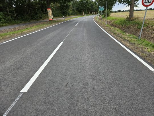 Im Rahmen der aktuellen Baumaßnahme wurden umfangreiche Arbeiten an der Fahrbahn sowie am parallel verlaufenden Radweg erfolgreich abgeschlossen. Insgesamt konnten 3,3 km Fahrbahn saniert und rund 2 km Radweg grundhaft erneuert werden.